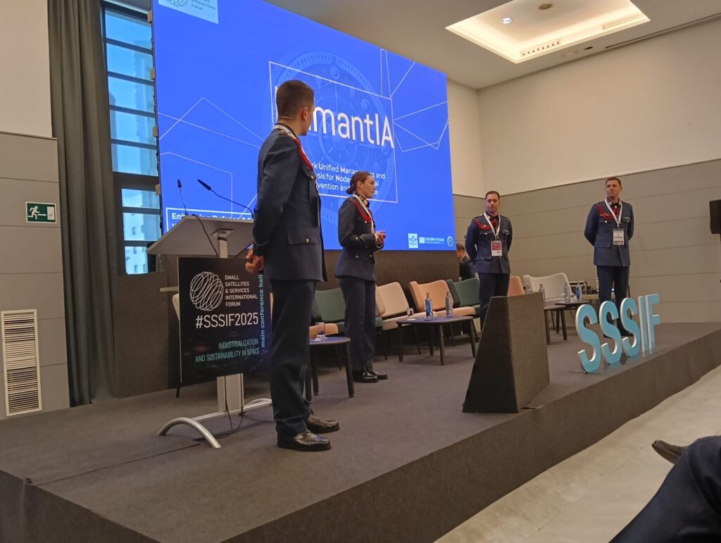 Otro de los hitos de la participación del Ejército del Aire y del Espacio en el SSSIF25 ha sido la presentación del proyecto NumantIA, ganador del Hackaton Cassini 2025, por parte de alféreces alumnos de la Academia General del Aire -AGA-. Este innovador proyecto busca optimizar la respuesta ante emergencias y catástrofes mediante el uso de tecnologías avanzadas de inteligencia geoespacial (GEOINT) y procesos de toma de decisión automatizados. La presentación de NumantIA ha generado gran interés dentro de la comunidad espacial, evidenciando el compromiso del Ejército del Aire y del Espacio con la innovación tecnológica y su aplicación tanto en el ámbito militar como en el civil.