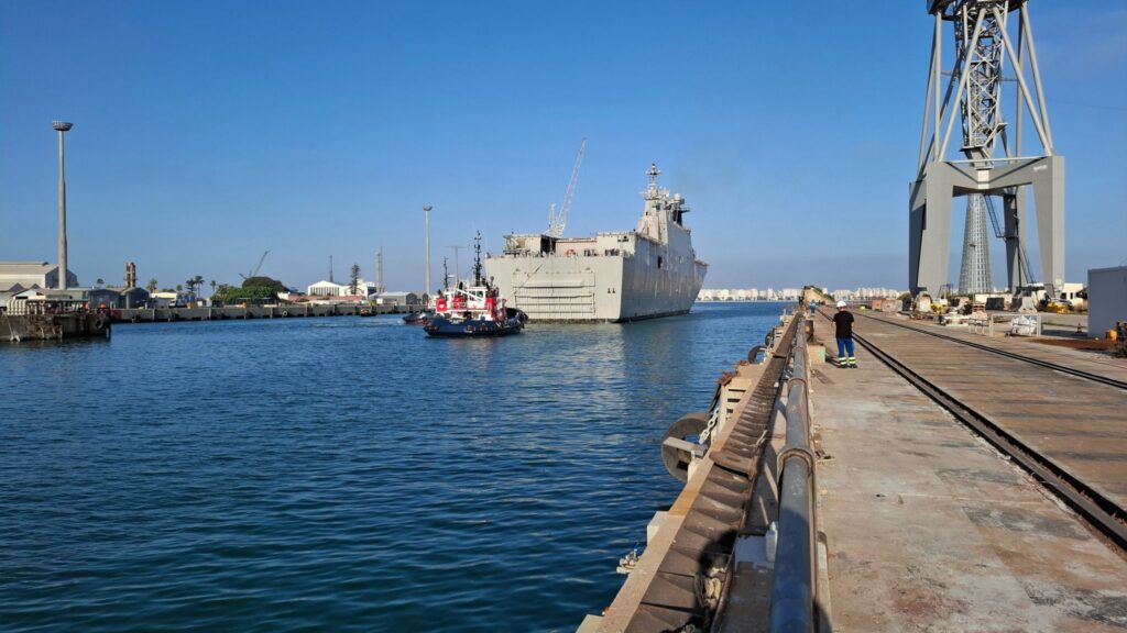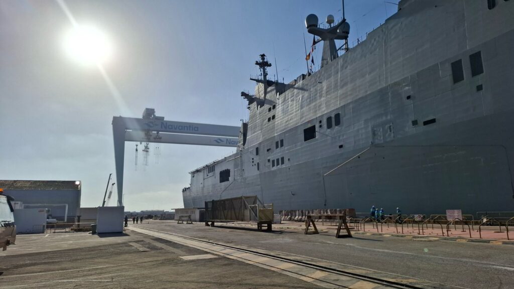 Según ha apuntado Navantia, el buque, tras desembarcar el arma aérea y prepararlo para su inmovilización, fue trasladado desde la Base Aeronaval de Rota al dique del astillero de Puerto Real.