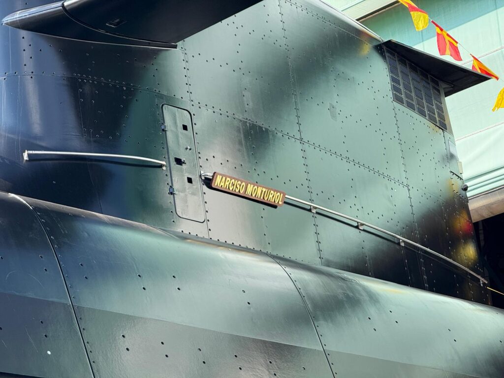 Este nuevo sumergible queda nombrado como 'Narciso Monturiol' y tiene por numeral -S82-. En los próximos días será trasladado al agua mediante un dique inundable, en maniobra similar a la de su predecesor, el 'Isaac Peral' -S81-, ya en servicio en la Flota