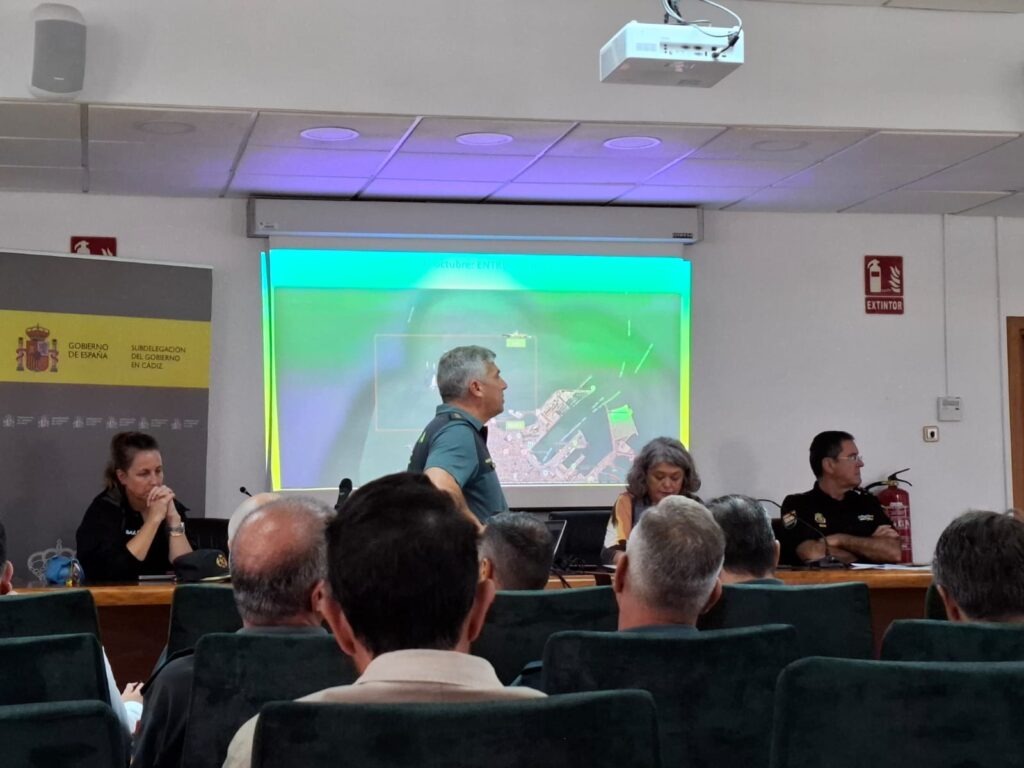 La Benemérita emplea ocho embarcaciones para el control de la lámina de agua, entre las que se encuentra el nuevo Buque Oceánico Multipropósito ‘Duque de Ahumada’, adscrito al Grupo Marítimo del Estrecho de la Guardia Civil y con puerto base en el recinto interior de la Zona Franca de Cádiz. Además, se cuenta con un helicóptero, drones y equipos antidrones, furgoneta con rayos X, medios de captación de imágenes y perros detectores de explosivos, entre otros servicios.