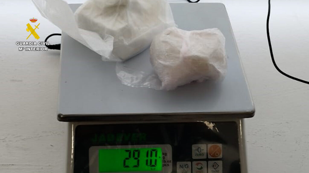 Tras un seguimiento discreto, los agentes lograron interceptar a esta persona y hallar, oculto en la mochila que portaba a sus espaldas, cocaína en roca (291 gramos) y hachís en pastillas (676’5 gramos), un cuchillo con restos de corte de estas sustancias, numerosos recortes de bolsas de plástico y una báscula de precisión. Es decir, lo necesario para preparar la droga en dosis y distribuirlas posteriormente al menudeo.