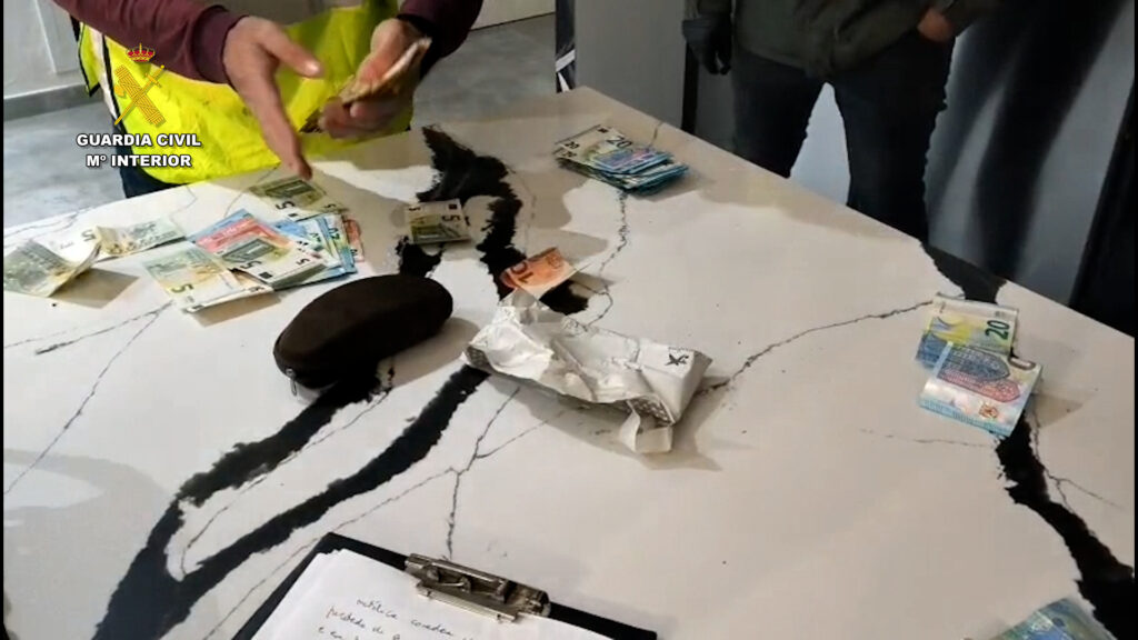 En la ocasión presente se realizaron dos entradas y registros; en el domicilio de lujo de este primer arrestado, en la localidad de La Barca de la Florida, donde se hallaron más de 20.500 euros, drogas y un arma de aire comprimido manipulada para disparar fuego real. Mientras, en el domicilio de sus padres en Alcalá de los Gazules -inmueble que se utilizaba para realizar las mismas labores-, se halló hachís.