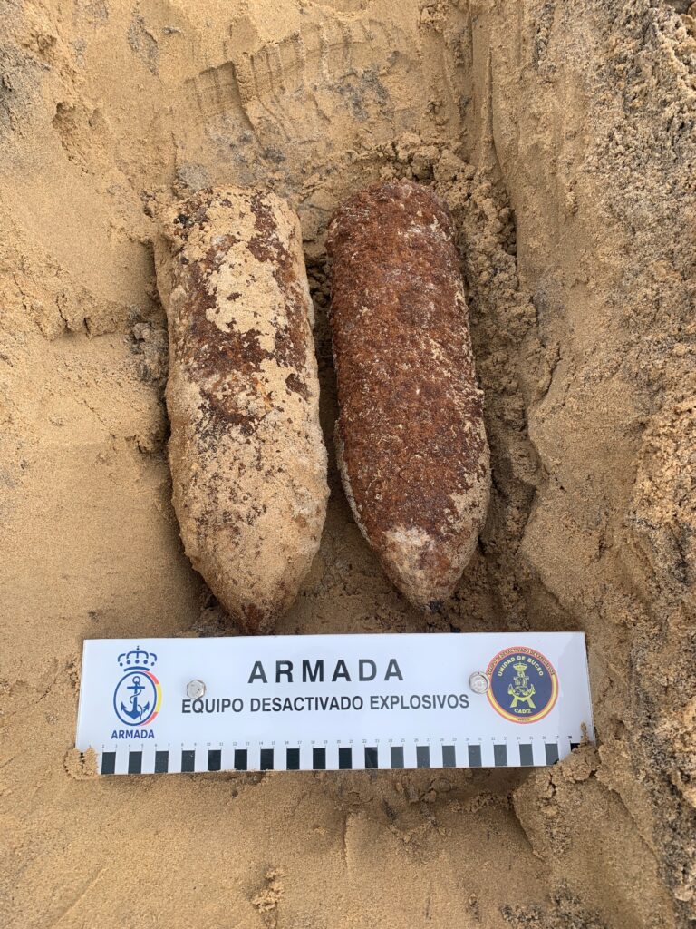 El hallazgo tuvo lugar cuando un vecino alertó a las Fuerzas y Cuerpos de Seguridad del Estado (FCSE) de la aparición de dos posibles artefactos explosivos. Inmediatamente, los agentes desplazados al lugar iniciaron el protocolo de actuación con la Armada (armada.defensa.gob.es) tras recibir el aviso del hallazgo.