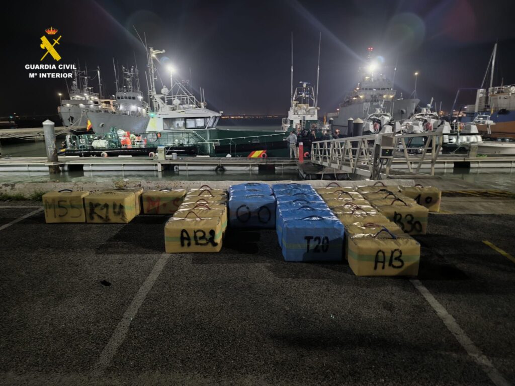 Apoyados en la batida por tierra por agentes de la Policía Nacional adscritos a la Comisaría en San Fernando (policia.es) y de patrullas de la Policía Local (sanfernando.es), finalmente se logró detener a los dos tripulantes que viajaban en dicha embarcación, y que iba cargada con 30 fardos de hachís, que tras ser desembarcados en los muelles de la Estación Naval de Puntales, en Cádiz, fueron pesados, dando un peso oficial de 1.050 kilogramos.