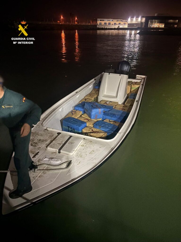 Durante la persecución se pudo comprobar que la lancha iba cargada de numerosos fardos conteniendo lo que aparentaba ser droga.