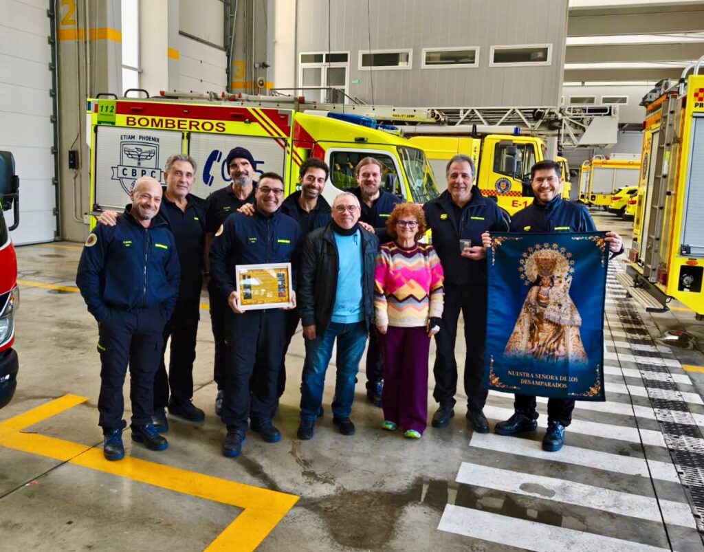 Una comisión de vecinos de Camañez (La Torre), Alfafar y Benetúser entregaron a los bomberos gaditanos una placa de agradecimiento, en la que se se destaca «vuestro esfuerzo y valentía, que fueron un apoyo fundamental en momentos de dificultad, demostrando que la vocación de servicio no entiende de fronteras, y que la solidaridad es uno de los valores más grandes que puede representar un cuerpo de emergencia».
