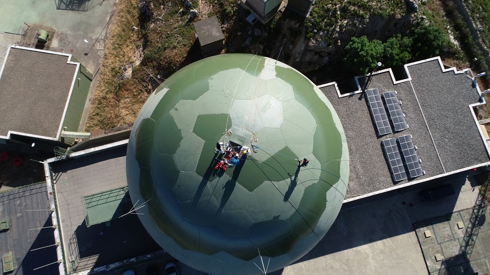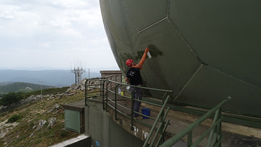 Impresionantes las labores de mantenimiento de la cubierta del radar de Alcalá de los Gazules