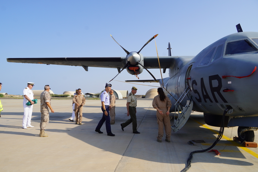 Tras visitar la aeronave, tuvo lugar un encuentro con el personal del destacamento, durante el cual se pudo conocer de primera mano el trabajo, las experiencias e impresiones de los militares desplegados en Yibuti durante su despliegue en esta misión internacional. El teniente General agradeció a los aviadores su trabajo y dedicación, y les alentó a continuar desempeñando su labor con el mismo compromiso que caracteriza a las Fuerzas Armadas españolas.
